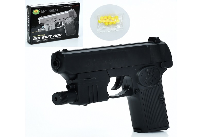 Пістолет 3000AF (72шт) 16см, пластикові кулі, лазер, на бат(табл), в кор-ці, 18-13,5-3,5см