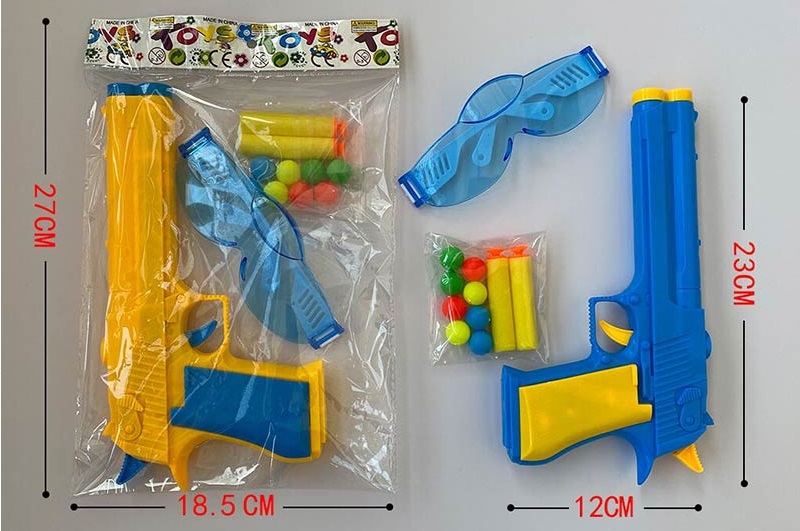 Пістолет арт. 233-22 (504шт/2) 3 поролонові снаряди, кульки, окуляри, пакет 27*18,5см