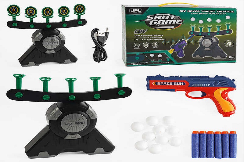 Повітряний тир 19891 В (24) м'які патрони, левітуючі кульки, 5 мішеней, регуляція потужності повітря