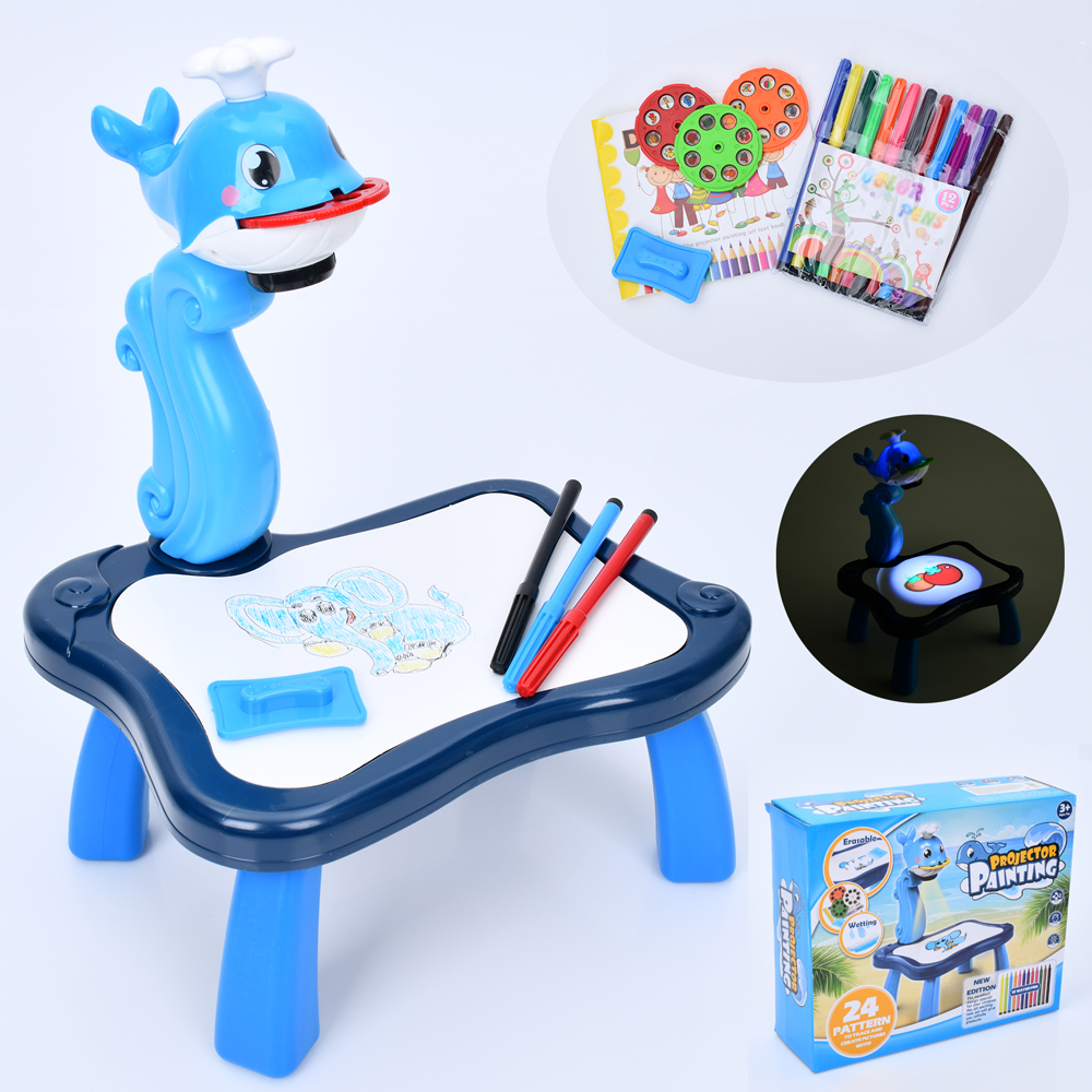 Проектор 331 (24шт) 24-21-в35, музика, світло, слайди (24 малюнка), фломастери, на бат-ці, в кор-ці,