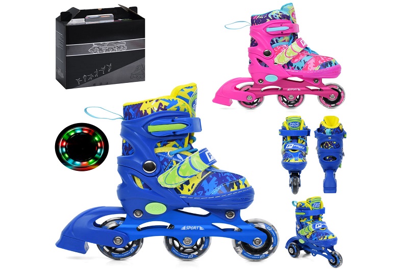 Ролики A4160-XS (6шт) розсувні, шнурівка+бакля, алюм.рама, 3 колеса ПВХ 61мм, 1світло, устілка 15см
