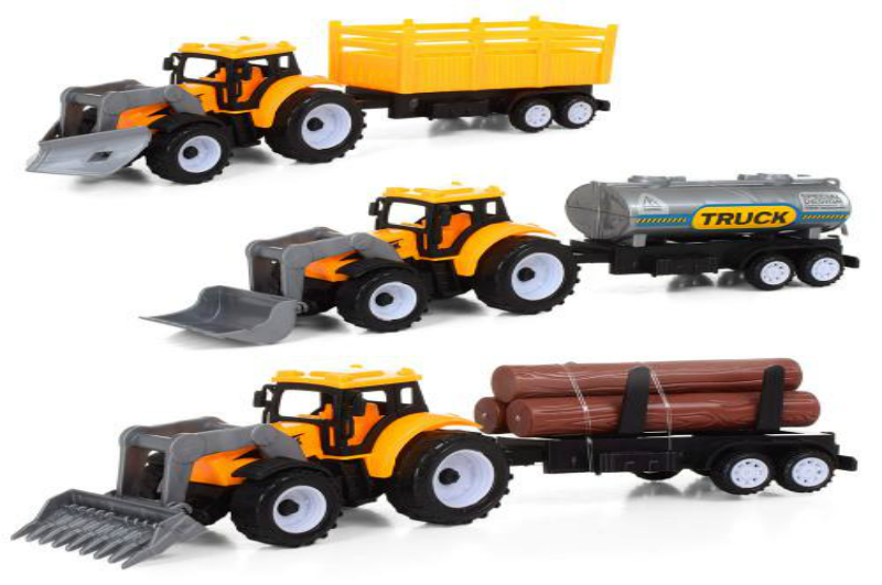 Трактор 1669-151-3-4 (168шт) з причепом, 23см, рухомі деталі, 3види, в кульку, 23-5,5-6см