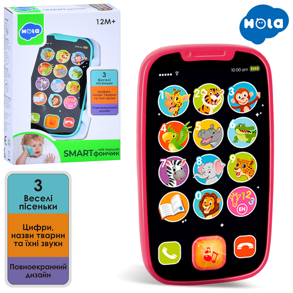 Телефон 3127 Z (48шт) навчальний( тварини/цифри/англ), 12,5см, музика, звук (УКР), пісні, вірші, сві