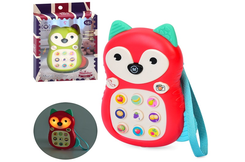 Телефон мобільний 8264 (48шт) 13см, музика, звук(англ), світло, навчальний(цифри, фрукти/ягоди), 2 р