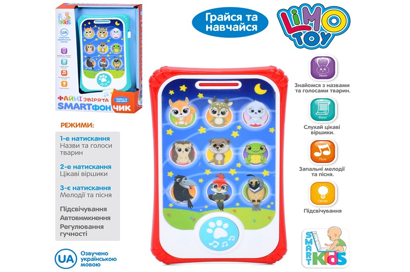 Телефон мобільний SK 0055 (36шт) 15,5см, музика, звук(УКР), звуки тварин, вірші, пісня, світло, 2 ко