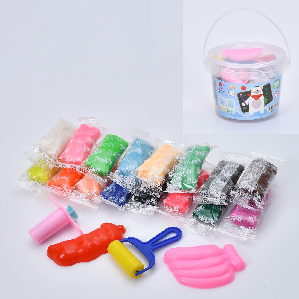 Тісто для ліплення MK 0514 (72шт) 16 кольорів,інструмент,4 формочки, 236 г, відро, 9-11,5-11,5см