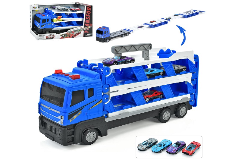 Трейлер D663-T204B (9шт) інерція, 37см, машинка 7см (4шт), звук, світло, на бат-ці (табл), рухомі де