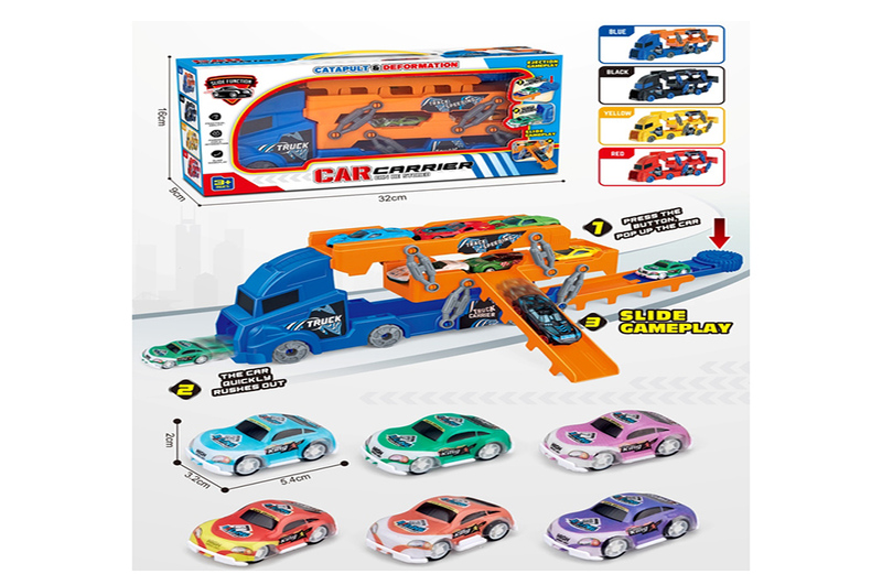 Трейлер XLH-09 (30шт) 2в1(трек, на запуску), 29см, машинки 6шт (6,5см, інерц, метал), 4 кольори, в к