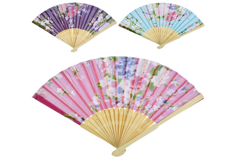 Віяло YG0191 УПАК12шт(450шт) 21см, квіти, дерев+тканина, мікс кольорів, упаковка пакет 12шт