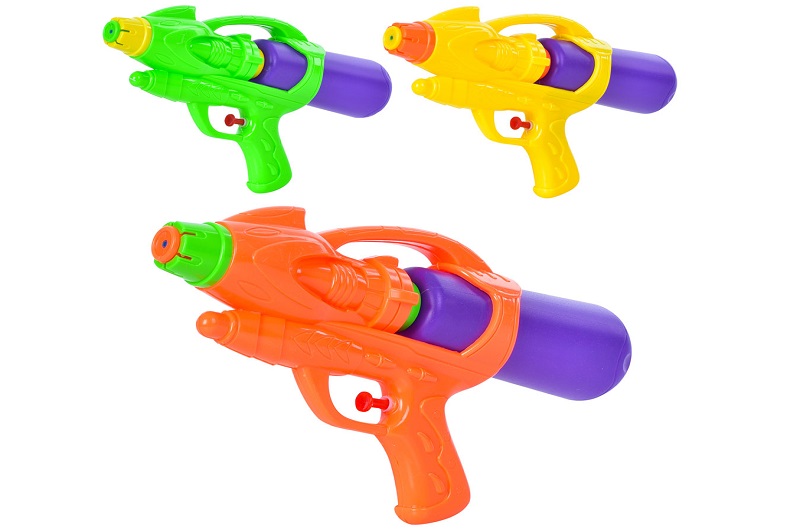 Водяний пістолет MR 1044 (60шт) розмір середній, 31см, 3 кольори, в кульці, 35-19-5см