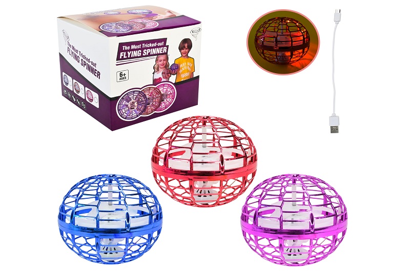 Запускачка арт. 858A (60шт/2) Літаюча куля-бумеранг, 3 кольори, LED підсвічування, USB-зярядний прис