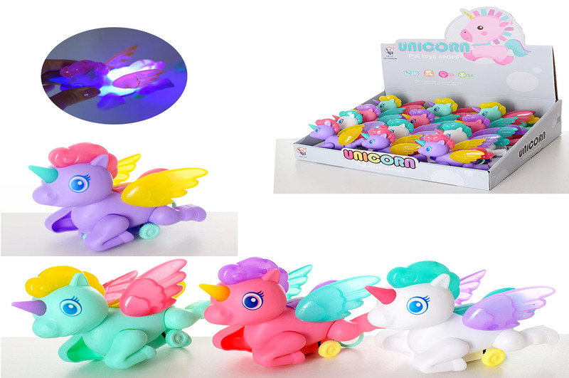 Заводна іграшка LY2226-A5 (180шт) єдиноріг, 11см, світло, бат-таб, 12шт(4види) у діслплеї, 37-32-10с
